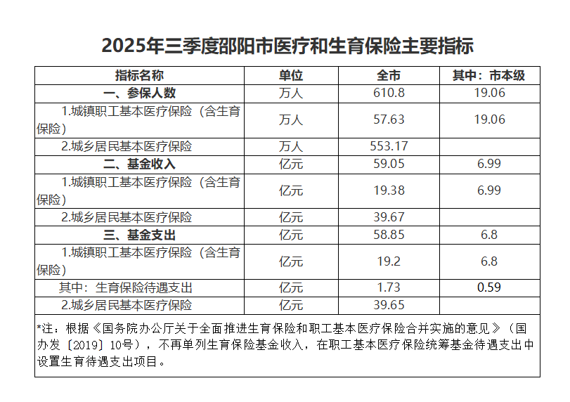 2025年三季度邵阳市医疗和生育保险主要指标