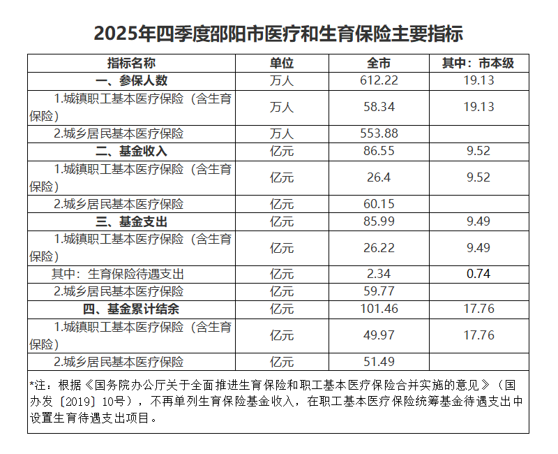 2025年四季度邵阳市医疗和生育保险主要指标